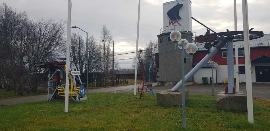 När det låga molnslöjorna lättat blir det hög molnbas och tendens till lite solsken. Höstlov pågår i Vemdalen By som i så många andra byar. Högtrycket blir nog torsdag-söndag och det rustas för rusning på många håll hos de olika näringsidkarna. Hos Vemdalia i Vemdalen By laddas det lite extra kan man se. Där finns även ett Skidmuseum som är mycket värt att besöka. Redan på parkeringen kan vi se en del av utställningen, där finns valda delar av Vemdalsskalets första skidlift som invigdes 1961. Det var då det började kan man säga. Med ett litet undantag. Bröderna Brommé som verkade på Vargen hade Vesseltrafik som drog upp skidgästerna till fjälltoppen för några slalomsvängar.